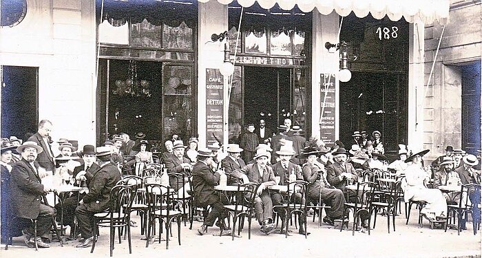 La place du Ralliement est depuis deux siècles le lieu d'élection de cafés réputés, l'un d'eux a brillé plus d'un siècle, jusqu'à devenir une "institution"...