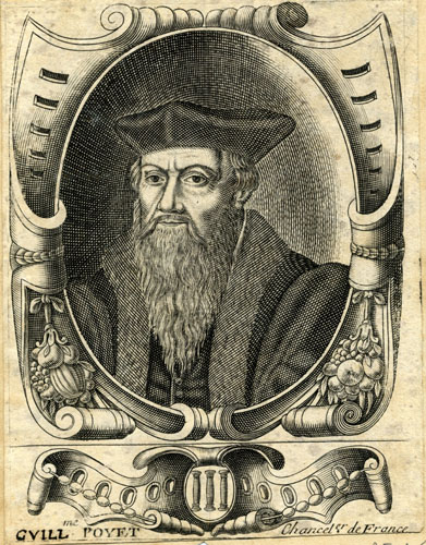 En 1538, Guillaume Poyet est au sommet de sa gloire. Né en 1474 à Angers, selon le témoignage des registres de délibération du conseil de ville - nous n'avons pas de registres de baptêmes-mariages-sépultures pour toutes les paroisses à cette époque ("mondict seigneur le chancellier… au moyen qu'il est né et natif de ceste ville…", Arch. mun., BB 21) - il est fils d'un avocat qui est aussi échevin. Son frère Pierre, également avocat, sera maire d'Angers à trois reprises (1519-1520, 1532-1534, 1541-1543).