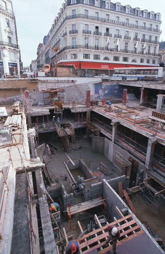 La grande épicerie Pelé occupait tout l'immeuble entre la rue de la Roë et celle des Deux-Haies. Tous les vendeurs étaient logés. Pâtisserie et charcuterie était de fabrication maison. La charcuterie était si renommée qu'elle débitait trente-deux porcs par semaine en 1914. La confiserie régnait royalement à l'étage. La maison Pelé fut la première à avoir un vivier d'eau courante. Notre tour de place se termine avec la Belle-Jardinière, de l'autre côté de la rue des Deux-Haies. Sur la place elle-même, en haut, se trouvait depuis 1896 "l'aubette" des tramways. Le Ralliement était le centre du réseau. De chaque côté attendaient les fiacres.