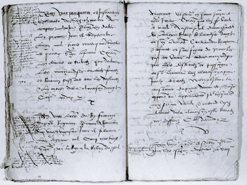 De ce premier inventaire subsiste un fragment de vingt-deux feuillets. Les titres de la ville y sont largement résumés et cotés par lettre alphabétique sans être classés dans un ordre chronologique. Les bouleversements des années 1560-1590 réduisent tout cet effort à néant. En 1623, le greffier constate que vingt volumes des registres de délibération ont été distraits des collections. Le conseil ordonne donc la confection d'armoires. Décision sans suite : les archives restent une proie pour les rats qui infestent les greniers de l'hôtel de ville, place des Halles (= Louis-Imbach).
