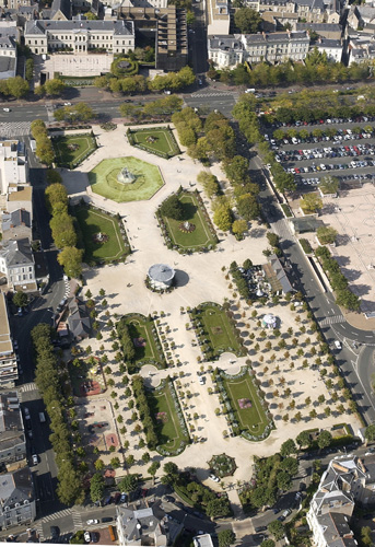 "Notre délicieux jardin du Mail fait l'admiration de tous, mais ne pourriez-vous pas l'embellir encore, en suggérant, au comité chargé de choisir un emplacement pour le monument des Angevins tombés au champ d'honneur pendant la guerre, l'idée (…) que nous vous soumettons (…). Le grand, trop grand bassin du Mail, de forme octogonale, serait divisé en huit parties égales, occupées alternativement par des eaux en cascades et par des mosaïques ; la fontaine actuelle, qu'il serait d'ailleurs facile d'utiliser dans quelque autre quartier de la ville, faisant place, au centre, au monument projeté" (1 O 117).