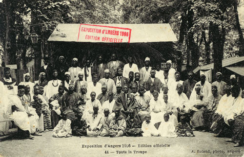 Le village noir, classique des expositions d'alors, attire par son exotisme en cette période d'expansion coloniale. Quatre-vingt dix sénégalais y reconstituent la vie d'un village africain, avec ses travaux et ses fêtes, très suivies. Celle du Korité attire une telle foule le dimanche 3 juin qu'on doit interrompre les entrées pendant une heure. Les Angevins y dégustent le "couss-couss", regardent danses et tam-tams. L'Afrique était pour la première fois à Angers.