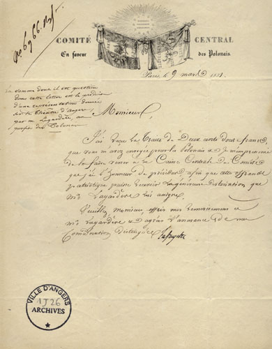 La grande insurrection polonaise de 1830, vite réprimée par les Russes, jette en France et notamment à Angers un grand nombre de Polonais . Le poète Mickiewicz est introduit dans la société intellectuelle parisienne par David d’Angers et se lie d’amitié avec l’Angevin Cyprien Robert , tandis qu’à Angers le cénacle de la famille Pavie accueille les Polonais Léonard Rettel et Jérôme Kajciewisz. Léonard Rettel « prêchait la résignation aux douleurs de l’exil. À Laval, il existait un dépôt de réfugiés polonais, comme à Angers ; souvent il s’y rendait à pied, partant le soir et arrivant au lever du soleil, fumant toujours et humant force tasses de café le long du chemin » (Théodore Pavie, Victor Pavie, sa jeunesse, ses relations littéraires). Les recensements de la population montrent qu’un grand nombre de Polonais se sont installés à Angers. L’un d’eux, Kretlow, est conducteur de travaux au service de la Voirie. En 1848, les Polonais d’Angers participent à la fête de la promulgation de la Constitution de la Deuxième République. La rue Polonaise, rue privée ouverte derrière Sainte-Thérèse lors de la construction de l’église en 1857, leur est dédiée en reconnaissance de l’aide apportée par la Pologne dans la guerre de Crimée. Cette dénomination est conservée lors de son classement dans les voies municipales, mais supprimée en 1893 après les accords franco-russes…