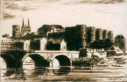 "Angers appartient à cette désagréable catégorie des vieilles villes qui ont été, comme on dit, "retapées". Ce n'est pas l'ancienneté du lieu, c'est sa nouveauté qui frappe le touriste nostalgique aujourd'hui, tandis qu'il flâne avec irritation sur des boulevards de deuxième catégorie, cherchant vaguement autour de lui quelque pignon inexistant. "Angers la Noire", en bref, est une victime des améliorations modernes, indigne de son admirable nom - nom qui, comme celui du Mans, a toujours été, à mes yeux, hautement chargé de pittoresque. (…) Angers occupe une place importante dans l'histoire primitive anglaise ; elle était la capitale de la lignée des Plantagenêts… Les faits engendrent une présomption naturelle sur l'aspect historique d'Angers, je les repassais dans ma tête dans le train qui m'amenait du Mans… Entre la gare et l'hôtel cependant, il devint évident que je n'aurais pas de prétexte pour passer la nuit au Cheval-Blanc. (…) Il est juste de dire que le château d'Angers vaut en lui-même le pèlerinage. Le seul inconvénient est qu'on en a fait le tour en un quart d'heure. On ne peut rien faire de plus que le regarder, et un bon coup d'oeil fait l'affaire. Il n'a ni beauté, ni grâce, ni détails, rien qui charme ou qui retienne. Il est simplement très vieux et très gros - si vieux et si gros que cette seule impression suffit, et il s'installe dans vos souvenirs comme un parfait spécimen de forteresse d'autrefois".