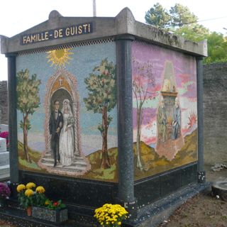 (33) - Famille DE GUISTI, entrepreneurs-mosaïstes. La tombe, en forme de cube, est entièrement décorée de mosaïques représentant les trois âges de la vie.