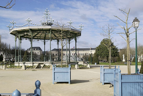 Le jardin du Mail est ouvert au public le 25 mai 1859. Pour y donner convenablement les concerts, un premier kiosque en bois est construit, dont se plaint le chef d'orchestre Lefort, le 10 juin 1859 : "Il n'est pas possible de continuer d'une manière convenable les concerts du jardin du Mail si on ne termine pas l'orchestre [le kiosque] comme il avait été convenu dans le principe. L'orchestre devait être fermé sur le derrière par des panneaux pour renvoyer le son en avant et en même temps pour garantir des coups de vent comme nous en avons eus dernièrement qui au milieu de l'exécution d'un morceau enlève toute la musique de dessus les pupitres (…). Il serait urgent aussi de fermer l'orchestre les jours où il n'y a pas de concert, car il y a quelques jours un triangle m'a été pris. On m'a aussi enlevé toutes les balles de plomb suspendues aux pupitres…" (Arch. mun., 1 O 598).