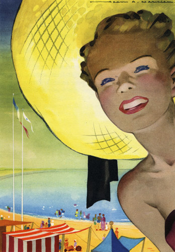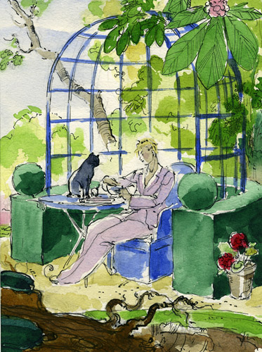 Comme illustrateur ? C’est alors le raffinement et l’élégance française, le rêve, des aquarelles peuplées de silhouettes féminines en robe à panier, des fleurs et des oiseaux, des châteaux fantastiques...