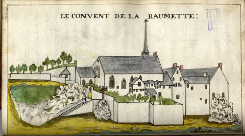 « Le couvent de la Baumette, écrit le père Gonzague en 1587, dans son Histoire des franciscains, est le plus célèbre et le plus florissant de tous ceux de cette province. Il est d’une structure presque incroyable, taillé dans un rocher très dur et très difficile, sur le bord de la Maine, à la vue de la ville d’Angers. Ce lieu est si agréable et si gai que non seulement il ravit les yeux de tous les visiteurs, mais encore il est fait pour guérir les esprits malades. »