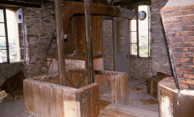 On a écrit couramment que la tour à plomb avait 45 m de hauteur. Elle était en fait moins élevée, 38 mètres ou 37,09 d’après une contestation entre l’architecte et l’entrepreneur ! Les premiers feux sont allumés dans l’atelier de fonderie du dernier étage vers la fin avril 1905. Ce n’est pas une sinécure, d’après les souvenirs de l’un des derniers fondeurs, Georges Martineau, donnés au Courrier de l’Ouest en 1984. Il faut commencer à 4 h 30, en faisant un feu d’enfer sous un grand chaudron qui peut contenir une tonne de plomb. Le monte-charge hisse bois et plomb en saumons (lingots) au quatrième étage. Les saumons, de 50 kg, viennent de la Société minière métallurgique Penarroya. Du plomb de récupération (tuyauterie) est aussi utilisé. La fusion se fait à 300° environ. Imaginons la température en haut de la tour… Le plomb vire au blanc, puis au bleu. On y ajoute alors de l’antimoine pour le durcir, puis de l’arsenic en poudre. Alors, à la louche, les ouvriers versent le plomb à travers les passoires correspondant à la grosseur voulue. Douze diamètres au total. « Nous chargions six tonnes de plomb chaque jour, à la louche. Il fallait avoir les bras et les reins solides ».