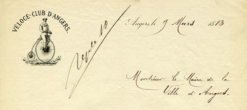 Quelques années s’écoulent jusqu’à la fondation, en 1875, du Véloce-Club d’Angers, sous l’impulsion, en particulier, de chefs d’atelier de l’école des arts et métiers, s’intéressant au perfectionnement de ce nouveau moyen de locomotion. Le club inaugure le 4 juillet sa première réunion de courses, allée du Mail (avenue Jeanne-d’Arc). L’événement est salué par la presse avec enthousiasme : « La longue allée du Mail a servi d’hippodrome aux vélocipèdes. Les coureurs, juchés sur les hauts et rapides véhicules, avaient un aspect fantastique ! » (Revue de l’Anjou). L’influence du club est considérable : ceux de Bordeaux (1877) et du Mans (1882), par exemple, sont créés par des Angevins.