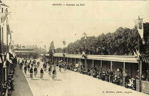 En 1876 est créé le Concours international, baptisé Grand Prix d’Angers en 1901 et considéré comme l’une des plus importantes courses de vitesse du calendrier sportif cycliste jusqu’en 1940. La première course sur route disputée en Anjou a lieu le 7 juin 1876, sur un parcours Angers-Tours-Angers, soit 220 km. C’était encore une nouveauté, ce type de course ayant été inauguré en 1869, sur le trajet Paris-Rouen. Toutes ces compétitions font d’Angers, comme l’écrit en 1880 L. Mertens, journaliste parisien spécialiste du nouveau sport, « la véritable capitale du cyclisme en France » (La Vie au grand air).