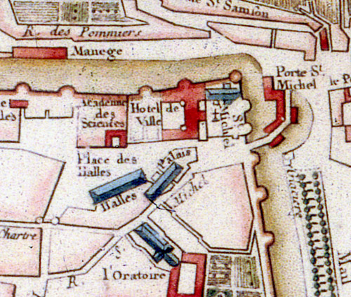 « C’est bien domage que cet édifice ne puisse servir à rien. Il m’étoit venu en pensée, me dit-il, qu’il faloit établir une académie de belle lettre et demander à l’Hôtel de ville la salle basse de ce pavillon pour en faire le lieu d’assemblée et de conférence pour la compagnie » (Mémoires sur l’établissement de l’académie des belles lettres d’Angers, par François Grandet. Bibl. mun. Angers, ms 1777).