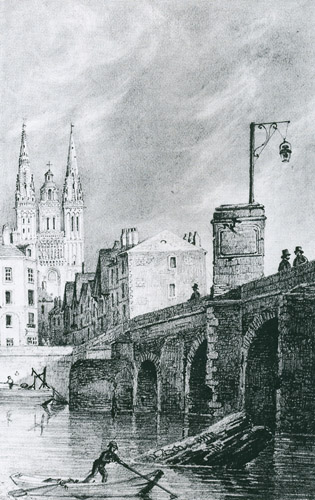 Les plus anciennes mentions d’éclairage public concernent aussi Angers : en 1279, on décide que le Grand Pont (actuel pont de Verdun), qui forme une rue resserrée entre ses maisons, sera éclairé toute la nuit par des lanternes.