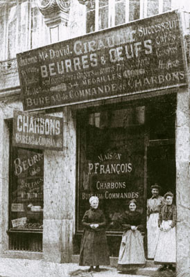 La crémerie Girault vendait beurre et œufs, mais également, comme son enseigne l’indique, des produits d’épicerie. Curieusement, elle tenait aussi lieu de bureau de commandes pour des charbons… Tous les crémets n’étaient pas vendus sur place ou aux hôtels de la ville. Des marchandes ambulantes les détaillaient avec leurs voiturettes baptisées « crémets ». « Aux crémets, aux crémets frais ! » criaient-elles. L’une d’elles, photographiée vers 1918, figure dans l’ouvrage de René Rabault, Angers naguère. Chacune avait son itinéraire dans la ville. Beaucoup d’Angevins raffolaient des crémets, comme le photographe Jacques Evers, qui les aimait accompagnés de fraises des bois et arrosés de Triple-Sec Cointreau…
